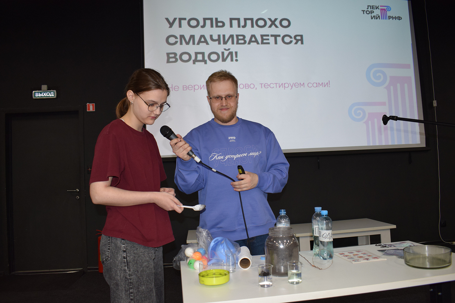 20 апреля в Красноярском детском технопарке «Кванториум» состоялись научно-популярные лекции, организованные Красноярским научным центром СО РАН. Перед слушателями выступили двое младших научных сотрудников лаборатории каталитических превращений возобновляемых ресурсов Института химии и химической технологии СО РАН — Виктор Голубков и Владислав Ионин.