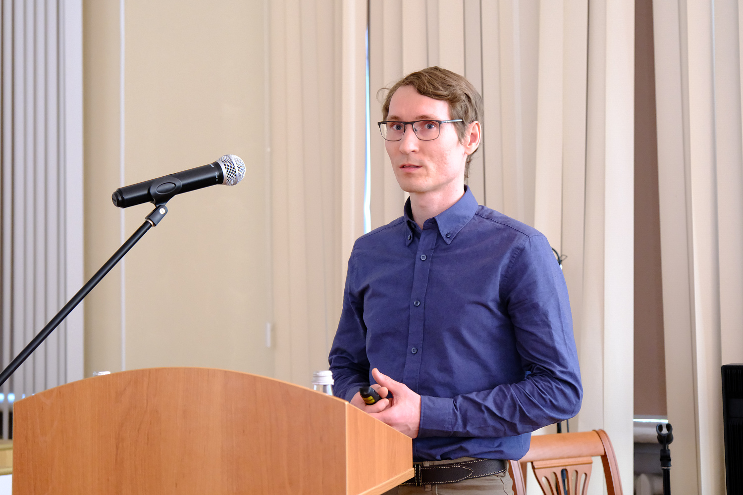 Доктор физико-математических наук Иван Тимофеев посвятил свой доклад синтезу и свойствам искусственных фотонных структур с нетривиальной топологией. Автор объяснил, как можно создавать волноводы, нечувствительные к дефектам, используя топологические состояния света — принципиально новый подход к управлению излучением.