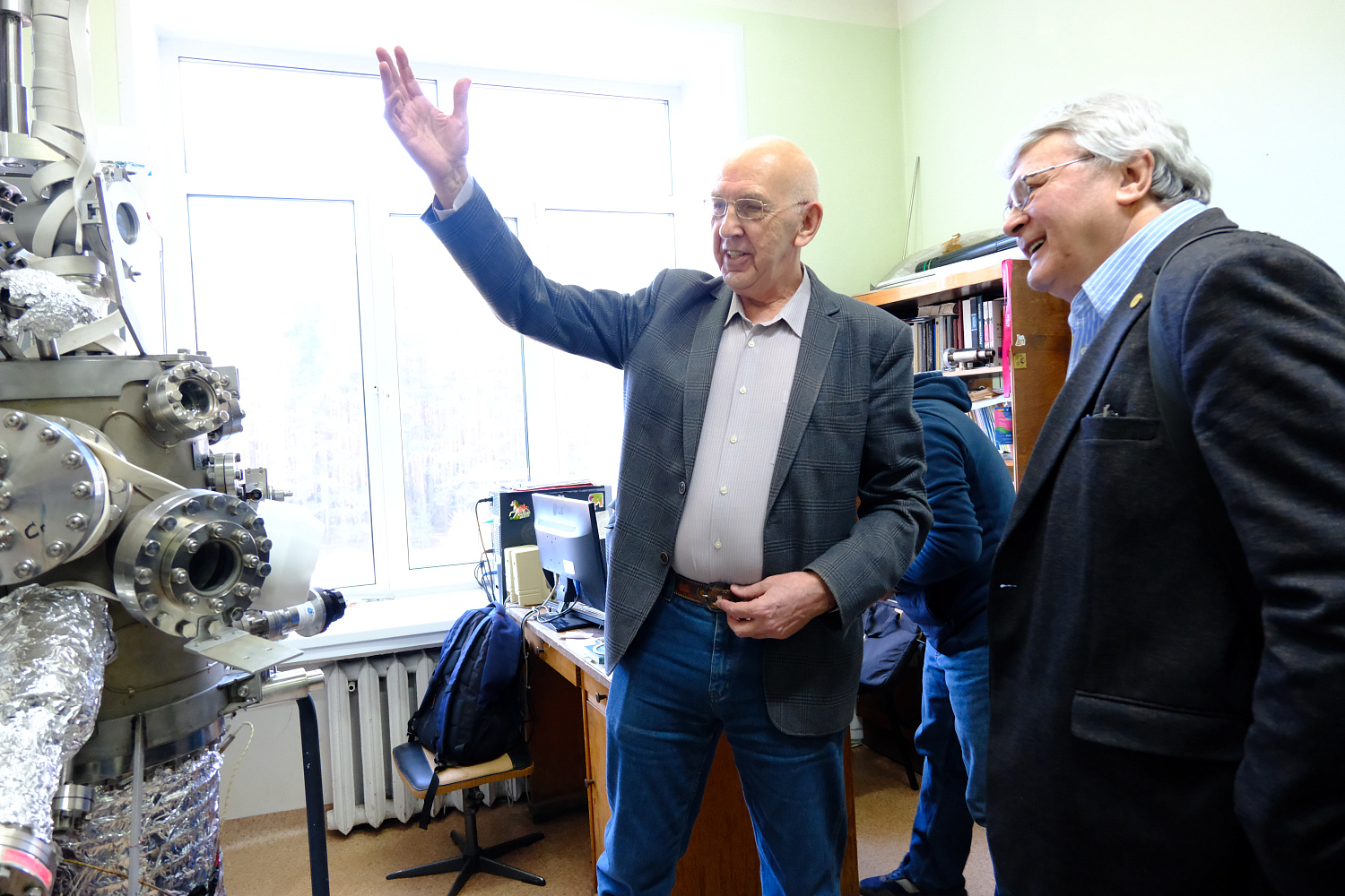 После обеда участников ждала экскурсия по Институту физики. Особый интерес вызвало посещение Лаборатории физики магнитных явлений — одной из трёх лабораторий, с которых начиналась академическая наука в Красноярске. Участники смогли увидеть уникальные установки для изучения магнетизма, заложенные ещё при Киренском. Вторым значимым объектом стала молодёжная лаборатория Электродинамики СВЧ устройств специальной радиоаппаратуры. Здесь работают в основном молодые сотрудники, разрабатывающие компоненты для спутниковой связи и систем ГЛОНАСС. Гости отметили высокий уровень оснащения и энтузиазм молодых инженеров.
