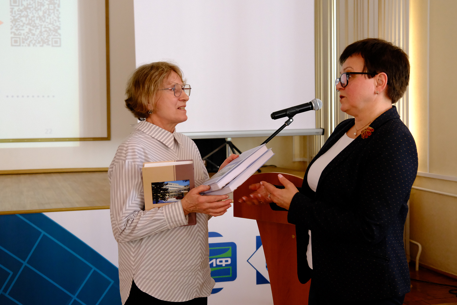 Кандидат педагогических наук Ольга Левченко (ИФТТ РАН) рассказала о сохранении научного наследия и работе с уникальными книжными собраниями. Она привела примеры оцифровки редких изданий и создания электронных архивов, доступных для исследователей по всей России. Ольга Ивановна передала в библиотеку Института физики им. Л.В. Киренского СО РАН несколько ценных изданий.