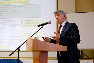 Академик РАН Акай Курбанович Муртазаев (Дагестанский федеральный исследовательский центр РАН) в своем докладе рассмотрел новые теоретические подходы к описанию критических явлений в сложных магнитных и сегнетоэлектрических системах. Автор показал, как микроскопические модели могут объяснять макроскопические аномалии вблизи точек фазовых переходов второго рода.